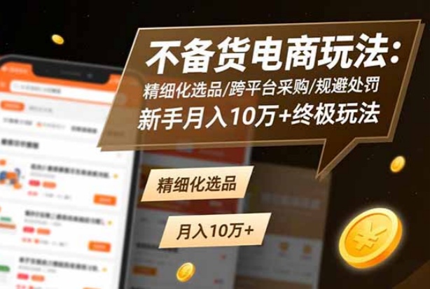不备货电商玩法:精细化选品/跨平台采购/规避处罚,新手月入10万+终极玩法