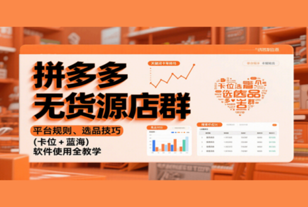 拼多多无货源店群:平台规则、选品技巧(卡位 + 蓝海),软件使用全教学