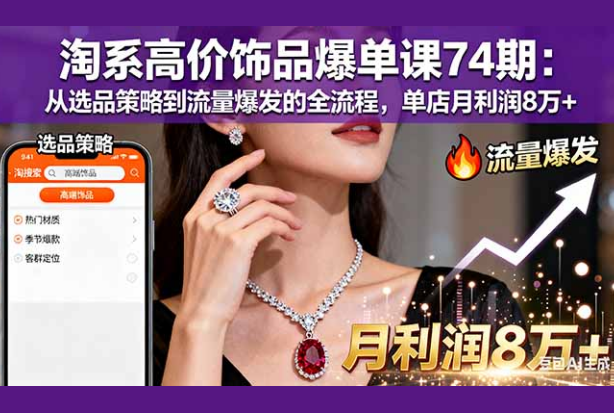 淘系高价饰品爆单课74期:从选品策略到流量爆发的全流程,单店月利润8万+