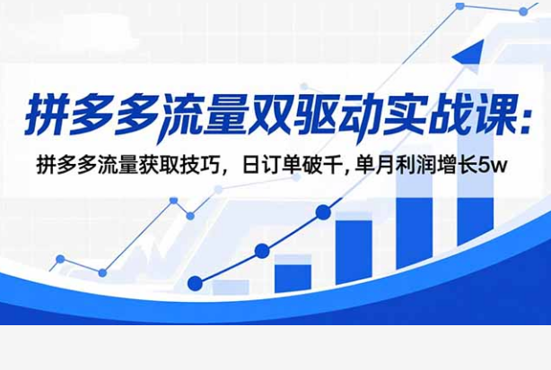 拼多多流量双驱动实战课:拼多多流量获取技巧,日订单破千,单月利润增长5w