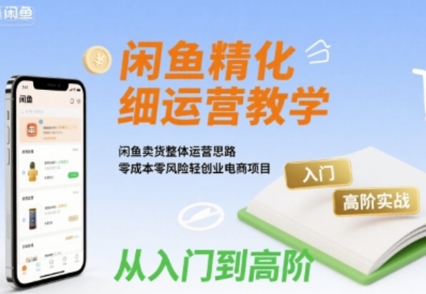 闲鱼精细化运营入门+高阶实战教学,闲鱼卖货整体运营思路,零成本零风险轻创业电商项目