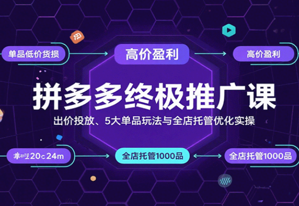 拼多多终极推广课:出价投放、5大单品玩法与全店托管优化实操