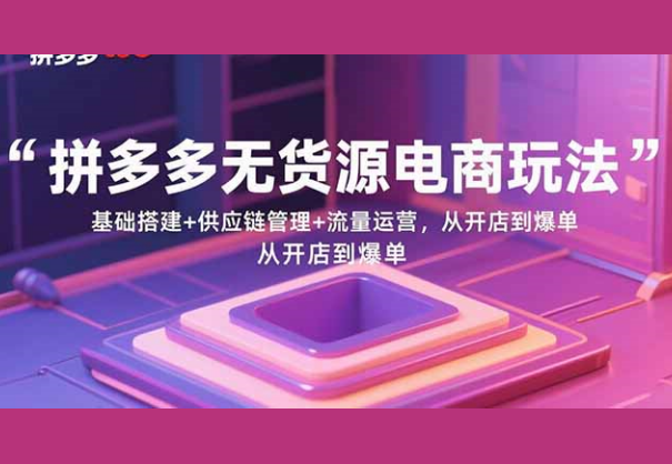 拼多多无货源电商玩法:基础搭建+供应链管理+流量运营,从开店到爆单