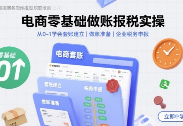 电商零基础做账报税实操快速上手,从0-1学会套账建立,做账准备,企业税务申报