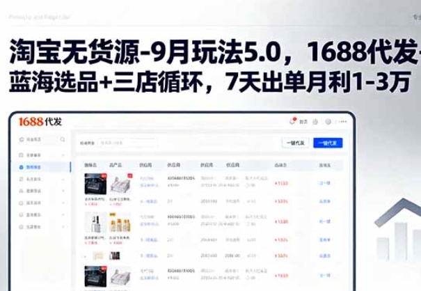 淘宝无货源-9月玩法5.0,1688代发+蓝海选品+三店循环,7天出单月利1-3万