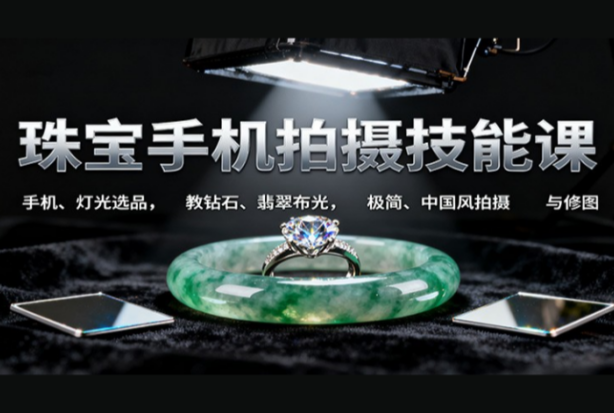 珠宝手机拍摄技能课手机、 灯光选品,钻石、翡翠布光,极简中国风拍摄与修图