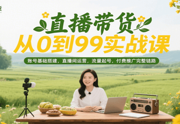 直播带货从0到99实战课,账号基础搭建,直播间运营,流量起号,付费推广完整链路
