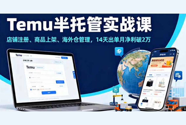 Temu半托管实战课,店铺注册、商品上架、海外仓管理,14天出单月净利破2万