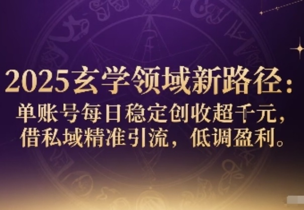 2025玄学领域新路径:单账号每日稳定创收1k+,借私域精准引流,低调盈利
