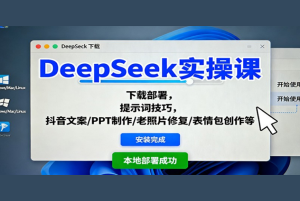 DeepSeek实操课:下载部署,提示词技巧,抖音文案/PPT制作/老照片修复/表情包创作等