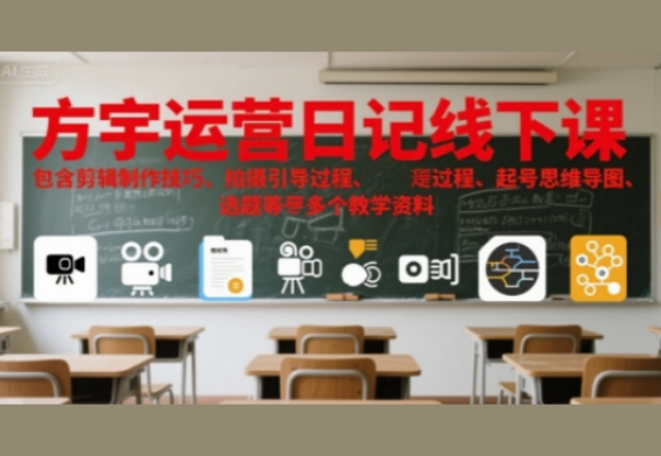 方宇运营日记线下课,包含剪辑制作技巧、拍摄引导过程、起号思维导图、选题等多个教学资料