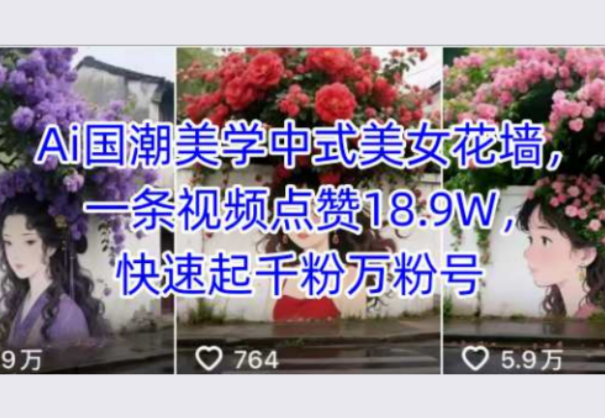 Ai国潮美学中式美女花墙,一条视频点赞18.9W,快速起千粉万粉号