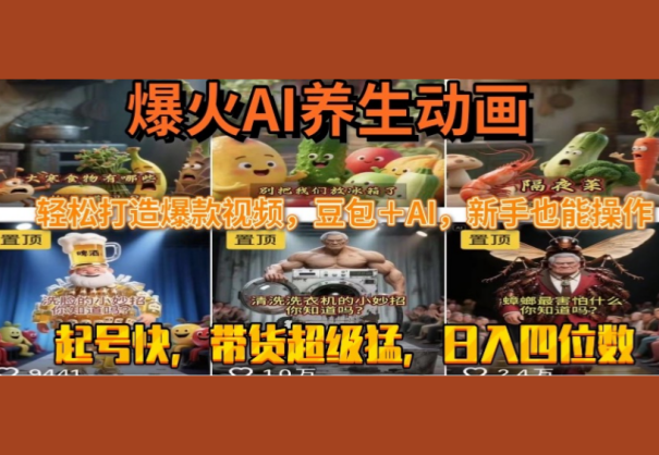 最新速成AI养生动画,轻松打造爆款视频豆包+AI,新手也能操作,起号快