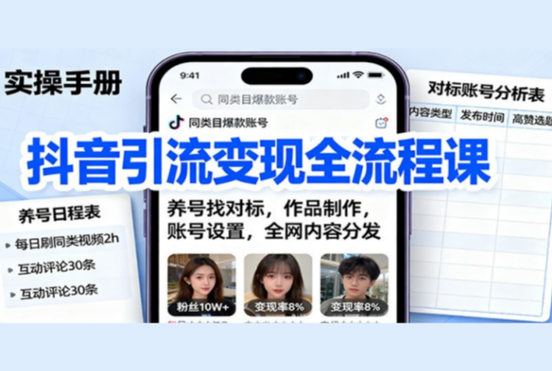 抖音引流变现全流程课:养号找对标,作品制作,账号设置,全网内容分发