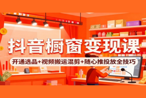 抖音橱窗变现课:开通选品+视频搬运混剪+随心推投放全技巧