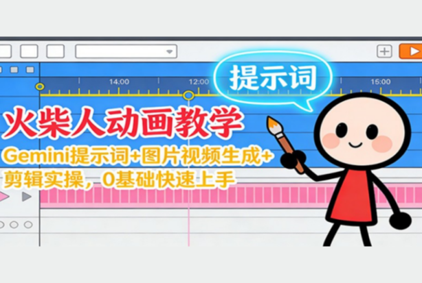 12月火柴人动画教学:Gemini 提示词+图片视频生成+剪辑实操,0基础快速上手