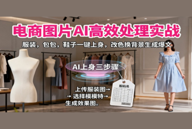 电商图片AI高效处理实战,服装,包包,鞋子一键上身,改色换背景生成爆文
