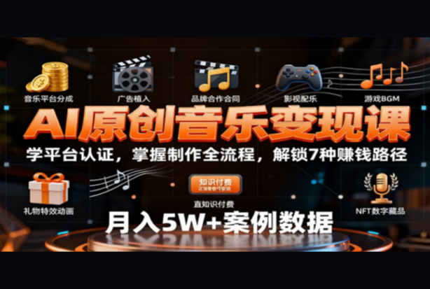 AI原创音乐变现课:学平台认证,掌握制作全流程,解锁7种赚钱路径