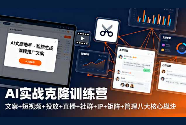 AI实战克隆训练营:文案+短视频+投放+直播+社群+IP+矩阵+管理八大核心模块