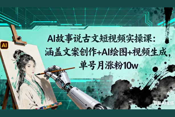 AI故事说古文短视频实操课:涵盖文案创作+AI绘图+视频生成,单号月涨粉10w