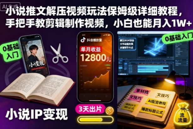小说推文解压视频玩法保姆级详细教程,手把手教剪辑制作视频,小白也能月入1W+