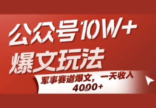 公众号10W+爆文玩法,军事赛道爆文,一天收入1k+,小白入手最快的项目
