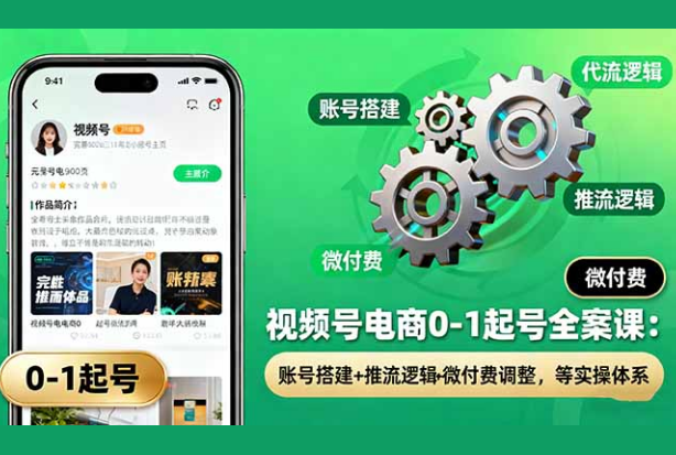 视频号电商0-1起号全案课:账号搭建+推流逻辑+微付费调整,等实操体系