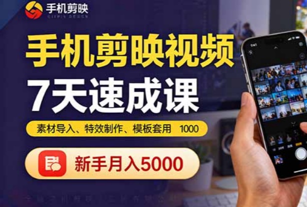 手机剪映视频7天速成课:素材导入、特效制作、模板套用,新手月入5000+