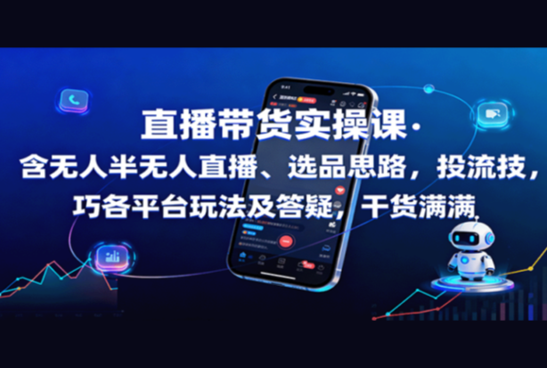 直播带货实操课:含无人半无人直播、选品思路,投流技巧,各平台玩法及答疑,干货满满