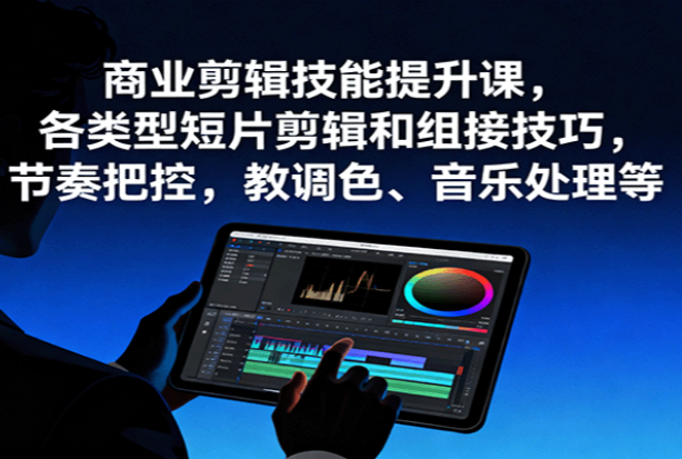 商业剪辑技能提升课,各类型短片剪辑和组接技巧,节奏把控,教调色、音乐处理等