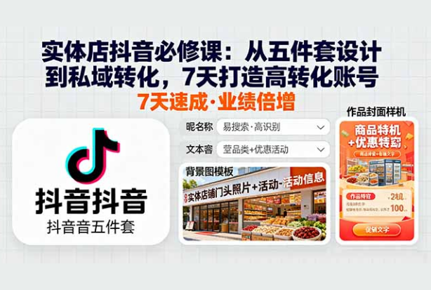 实体店抖音必修课:从五件套设计到私域转化,7天打造高转化账号