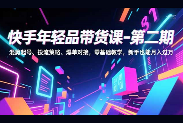 快手年轻品带货课-第二期,混剪起号、投流策略、爆单对接,零基础教学,新手也能月入过万