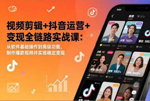 视频剪辑+抖音运营+变现全链路实战课:从软件基础操作到高级功能,制作爆款视频并实现稳定变现