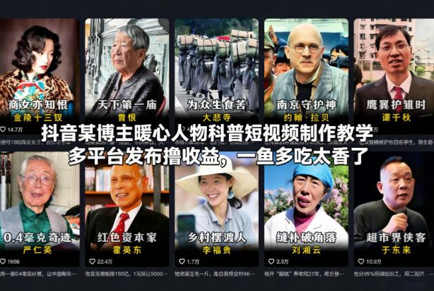抖音某博主暖心人物科普短视频制作教学,多平台发布撸收益,一鱼多吃太香了